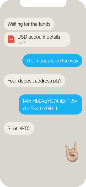Fees are charged on a per-trade basis on the value of the trade (according to the table). Fees are added on top of the quote price you will receive from us during the trade.